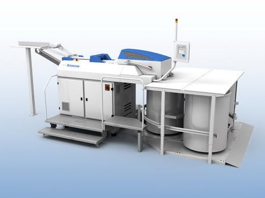 كما من الممكن تزويد الآلة بنظام تخليع نصف آلي حيث تميل البكرة بزاوية 30 درجة مما يسهل استخراجها من المردن من قبل العامل كما في الشكل .