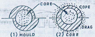 Blow holes, gas holes or gas cavities are well rounded cavities having a clean and smooth surface. They appear either on the casting surface or in the body of a casting. These defects occur when an excessive evolved gas is not able to flow through the mould. So, it collects into a bubble at the high points of a mould cavity ad prevents the liquid metal from filling that space. This will result in open blows. Closed, cavities or gas holes are formed when the evolved gases or the dissolved gases in the molten metal are not able to leave the m ass of the molten metal as it solidifies and get trapped within the casting. These defects are caused by : i) excessive moisture content (in the case of green sand moulds) or organic content of the sand, moisture on chills, chaplets or metal inserts, ii) inadequate gas permeability of the molding sand (due to fine grain size of sand, high clay content, hard ramming), iii) poor venting of mould, insufficient drying of mould and cores, cores not properly vented, high gas content of the molten metal, iv) low pouring temperature and incorrect feeding of the casting etc.